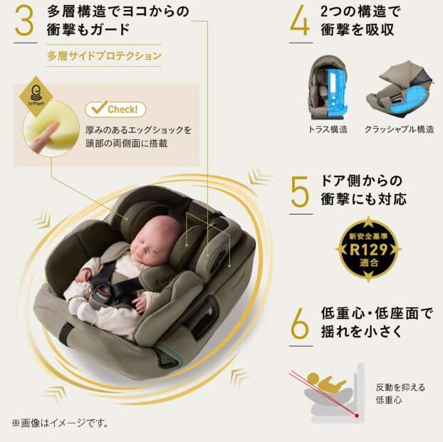 一方、THE S R129 エッグショック ZFは、新生児から4歳頃まで使用可能で、必要な期間をカバーしつつ価格を抑えたい方に向いています。​